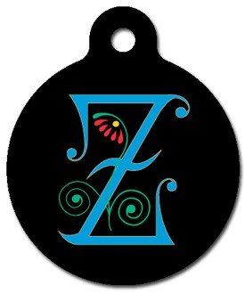 The Spring Monogram ID tag, Letter Z; personalize your pet, add identification to your luggage, use it as a key fob for your cell phone, useful for personalizing just about anything!Each of our Pet ID Tags are designed and illustrated by artists from all over the globe, and printed with affection and care in the mountains of North Carolina. They are ultra-durable and are guaranteed to always be legible. Please help with our goal of a supplying a cool, custom Pet ID Tag for every pet by purchasing one of our uniquely designed and stylish Pet ID Tags.Our tags are 1 1/4 inches (3.18 cm) in diameter. They are made of airplane grade aluminum and coated with a special polymer that fuses the graphics permanently to the pet tag. Fully customizable with pet name, phone number, and other vital pet information. Each of our designs is custom created and "crowdsourced" by Dog Tag Art Designers from all over the world. They are made in the USA. Each time the tag sells we pay a royalty to the designer.