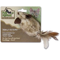 An ounce of mouse equals a ton of pounce. Play-n-Squeak Shake y'r Tail Feather catnip mouse comes fully equipped with electronic "real mouse" sound, and as always, includes catnip.